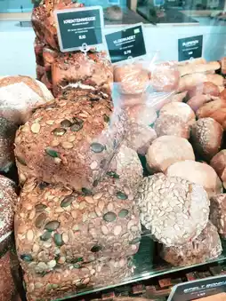 In their Waste-no-more store, you can purchase bread the day before at a discount in an effort to reduce bread waste. It's both an eco-friendly and delicious choice.