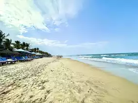 Similar to My Khe Beach in Da Nang, the beach is wide and the waves are a little high, but the water is clean🌊🤍✨