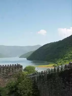 Climbing the tower offers a panoramic view of Jinvali Lake🏞️.