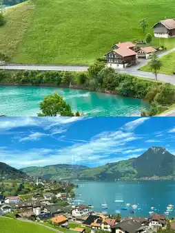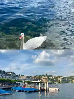 6. Lake Lucerne: Surrounded by mountains with crystal-clear blue waters. The city of Lucerne features the famous Chapel Bridge. Boat tours reveal swans, waterfowl, and perfect mountain-lake harmony.