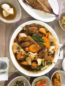 After exploring Hahoe Village, I headed to downtown Andong to try jjimdak. The generous portion, infused with a savory soy sauce seasoning, was incredibly flavorful. The combination of glass noodles and vegetables added a delightful texture, making it a fun dish to eat. Its spicy yet slightly salty taste was satisfying and made for a hearty meal during my trip. 🔮