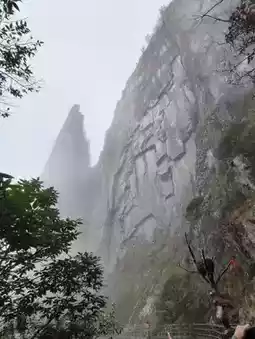 The Shisun Peak is 1,766 meters above sea level and is one of the most spectacular sights in the Yangsimu Scenic Area. It is 264 meters high and stands like bamboo shoots after a spring rain, breaking through the ground and piercing the clouds. It stands alone and towers high in the air, which is amazing. Therefore, it is named "Shisun Peak Piercing the Clouds".