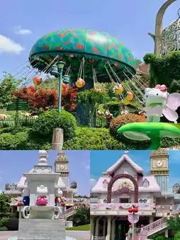 🏡Hello Kitty Courtyard: Hello Kitty’s home, decorated super cutely! Various castles, living rooms, and beds are all Hello Kitty elements, and the photo effects are superb