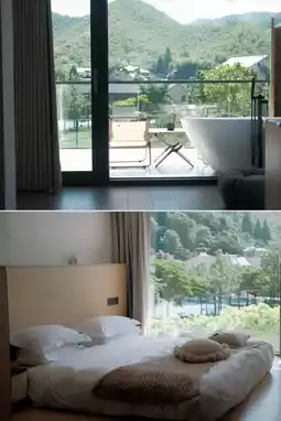 What's more surprising is the outdoor hot pool built along the mountain ♨️, where one can admire the snow in winter and listen to the wind in summer. In the evening, one can shed the day's fatigue and arrange a private mountain wild bath, serene and quiet yet full of wild charm.