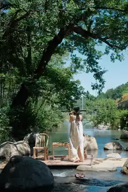 I visited Anji Yinkeng Village and unexpectedly discovered the same creek swing as in Shaoxing. Under the shade of trees by the clear stream, one can briefly escape the heat waves of the city.