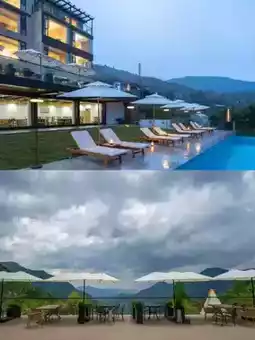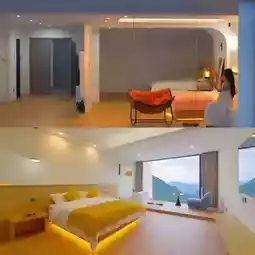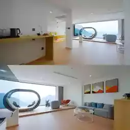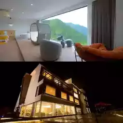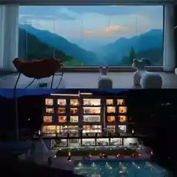 The hotel is on the top of the mountain, you need to drive yourself to the top, the hotel butler will greet you at the door, help with luggage, and once you get to the room, you can see the super amazing floor-to-ceiling windows