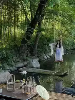 Made the same swing and bamboo raft as on the Shaoxing River