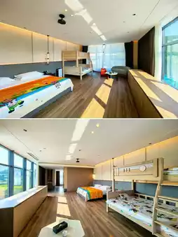 🏨If you are tired, you can stay in the newly opened Junlan Hotel, which is really super fragrant! You can walk to it. The hotel's lake view room has a super wide view, facing the water park, the view is super awesome! The first floor lobby rest area is all floor-to-ceiling windows, high-end atmosphere and high-grade~ There is also a super large swimming pool, taking pictures📸 super out of the picture! The night🌃 is very quiet, and friends who don't sleep well don't have to worry about not sleeping~