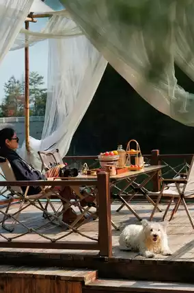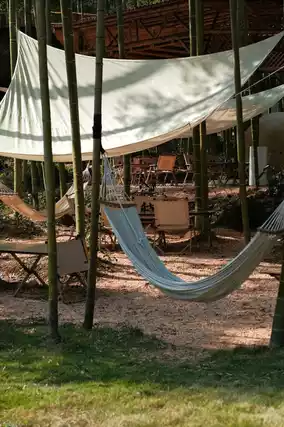 There are hammocks 🛏 in the woods, with dappled 🌞 through the bamboo leaves,