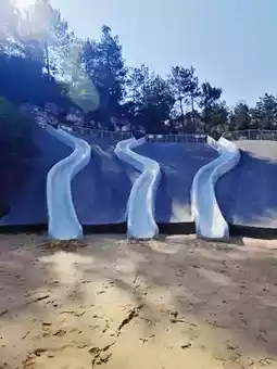 ✅Slide: There is a long slide on the hill. You can climb up the rock wall next to it and slide down again. There are slides for different ages. As it is an outdoor stone slide, it is recommended to wear long pants👖, otherwise, you may scratch your legs🦵. There is a sandpit at the bottom of the slide.