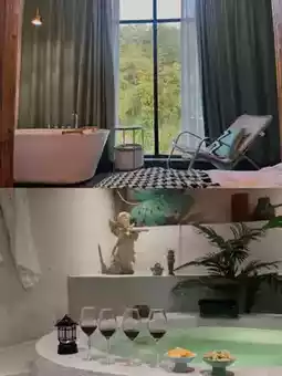 The room is decorated in a simple and exquisite way. Every detail is well thought out. The oversized floor-to-ceiling windows frame the mountain view into a beautiful picture. Waking up in the morning to the sound of birds and the mountain scenery is a relaxing experience. Here comes the point, the open-air private hot spring bathing pool is simply divine! High-quality hot spring water is introduced. When night falls, soak in the warm water and look up to see the starry sky. Surrounded by the tranquility of the mountains and forests, all fatigue disappears. Surrounded by tea gardens and bamboo forests, you can hike to enjoy the scenery and breathe the fresh air. The service is also considerate and responsive. Only after this trip will you understand what an immersive vacation is. Come on! ️