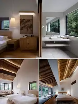 Not only is the scenery beautiful, but the hotel also offers a tranquil experience for visitors. Eight buildings house only 19 rooms, each spacious with multiple scenic windows, underfloor heating, and central air conditioning. The bamboo view rooms in this package start at 40 m², with large windows bringing the outdoor bamboo forest and mountain views into the room, creating a Zen atmosphere. The king rooms also have bathtubs, allowing you to enjoy a bath and the view at the same time.