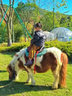 Kids can ride horses on the lawn.