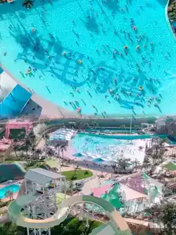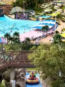 There are many water park projects, wave pools, water roller coasters, various spiral slides, music + huge waves, and a great atmosphere. There are also stages and performances!
