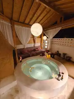As night fell, it was time for the hot spring I had been looking forward to. The hot spring water at Qixin Shanyin is clear, and soaking in it washed away all my fatigue. In the hot spring, I felt like I could hear the breath of nature, and my body and mind were completely relaxed.