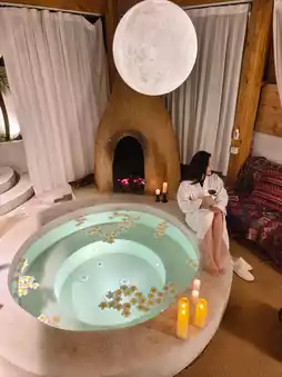 During my day at Qixin Shanyin Homestay, I experienced the joy of being a Korean princess, enjoyed the comfort of the hot spring, and savored the elegance of red wine. This is not just a homestay, but a place to relax and experience different cultures. If you also want to escape the hustle and bustle of the city, come here and experience a day as a Korean princess!