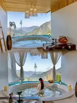 The newly built private hot spring at Jiumu is built on the cloud terrace