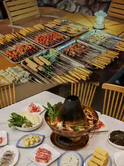 The homestay has a restaurant, with breakfast, a delicate afternoon tea for two, and a minibar included. Lunch and dinner are also available, with whole lamb and BBQ in the courtyard.