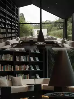 The oversized floor-to-ceiling windows bring the greenery indoors