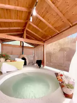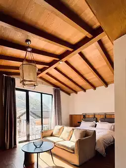 I came here for the hot spring~ I just wanted to relax and didn't plan any skiing~ We set off at noon and arrived at around 2 pm. The homestay is in the mountains~ It's quiet and secluded~ After a short break, we went to the hot spring~ We made an appointment with the butler in advance~ Each room has a private hot spring, with bamboo outside the curtain and fairyland inside~ I love hot springs in winter~ It's freezing outside, but hot inside~ I also took my kids to celebrate New Year's Day in advance~