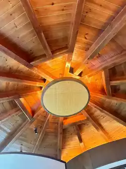 The infinity pool is closed in cold weather, but it would be beautiful in the summer.