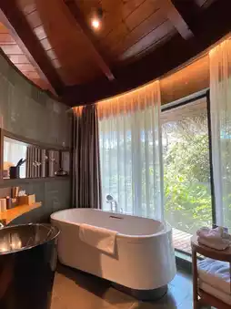 The environment is great, with standard suites and detached thatched cottages. We chose a detached thatched cottage, and the hotel offered several free activities, including a Hanfu experience and a Wupeng boat ride. There's also a free shuttle service, and meals can be delivered to your room. Although it's a bit far from everything, it's generally quite convenient.