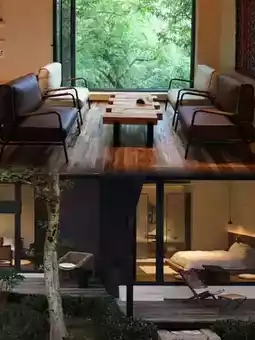 The hotel has a total of 21 rooms, with a rich variety of room types, including mountain view rooms with king-size beds, garden terrace rooms with twin beds, and mountain stream rooms with king-size beds. Each room is equipped with oversized floor-to-ceiling windows, allowing you to enjoy the beautiful mountain scenery from the comfort of your bed. The interior is decorated in beige tones and wooden furniture, full of Wabi-Sabi style, as well as an intelligent bathroom system, guest control system, minibar, etc., with meticulous attention to detail.