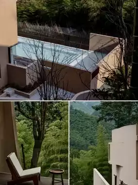 17 rooms face the bamboo sea, ensuring complete privacy. "Xu": a 180γ‘ duplex private hot spring suite with two bedrooms, featuring a U-shaped courtyard pool embraced by bamboo groves, perfect for families or close friends. "Yi": a private hot spring courtyard suite with a separate entrance and courtyard, offering 90-110γ‘ of space with an independent tea area for quiet contemplation. "Chi": a 70γ‘ mountain view suite, and 45γ‘ king/twin rooms, where floor-to-ceiling windows invite natural light in. Quality details: Acqua di Parma toiletries, Dyson hair dryers, capsule coffee machines, direct drinking water systems, and even bath salts with rose and bamboo scents, offering the utmost care.