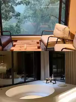 🏠The homestay is a stunning white building surrounded by bamboo forests with a small stream nearby, full of natural charm~ Various room types are available, including family rooms, mountain-view rooms, and lofts. The views from the floor-to-ceiling windows are absolutely amazing!