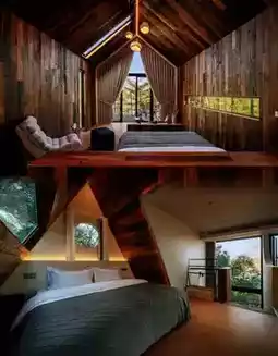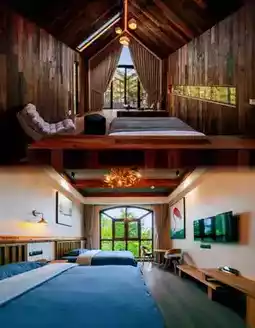 Opened three tree house private hot springs in Anji Anji Linjian B&B's stand-alone loft private hot spring tree house
