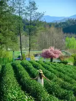 After lunch, navigate to Xunmeng Peach Blossom Valley, where you'll gather to head to the tea mountain. A shuttle bus takes you up the mountain, 💰168/person for a 1-hour experience. You can fry your own tea to take home, and pick as much as you want. Children under 1.5m are free‼️