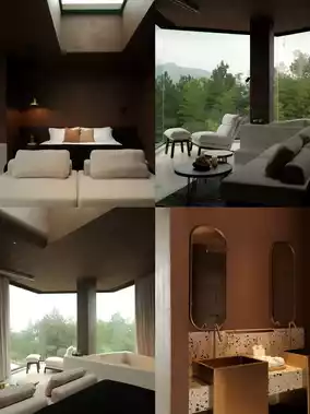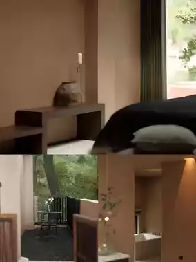 📸 Best shooting spots: Rooftop infinity hot spring pool/bamboo forest suspended tea room/Fauvist rammed earth wall
