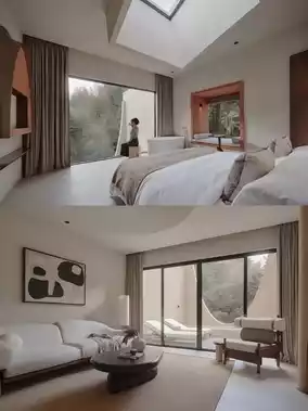 🛏 Exquisite and Cozy Quality Living: Walking into the room, you are greeted by a warm and exquisite atmosphere 🥰. Every detail has been carefully designed, the furniture is placed just right, and the bedding is soft and comfortable 🛏. Lying on it feels like being gently wrapped in clouds, allowing you to have a sweet dream all night long🌙. The decoration in the room is full of artistry, simple yet stylish, complementing the natural beauty outside. Open the window, and the fresh air pours in, mixed with the fragrance of flowers and plants, as if injecting the soul of nature into the room🎐.