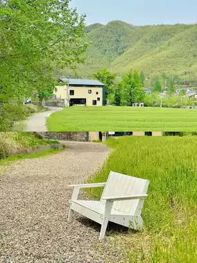 👍✨ Yucun Impression·Youth Library: Unique architecture with expansive lawns and rice fields at the entrance. Enjoy coffee, browse creative shops, or ride the mini train through the fields.