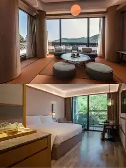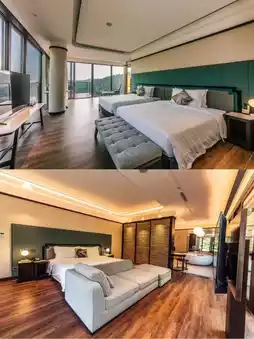 124 beautifully scenic rooms, each with breathtaking views 🪟, are distributed at the foot, middle, and top of the mountain. The resort's guestrooms feature glass doors, windows, and terraces, bringing the natural mountain scenery indoors 🛌. The spacious rooms provide ample space for fun, perfect for families with kids to jump around and enjoy!