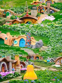 Alpine Grassland → Non-Powered Playground → Petting Zoo → Hobbit Town → Sky Train → Donut Grass Sliding → Spinning Helicopter → Bouncing Cloud → Mini Cloud Racer