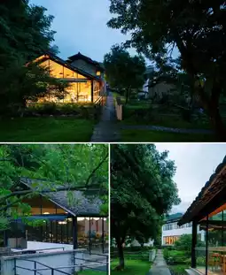 Nestled among mountains on three sides, a clear stream meanders through the property, with misty bamboo forests stretching as far as the eye can see. Within a 30-minute drive, you can reach attractions like Yunshang Grassland, Jiangnan Tianchi Ski Resort, Hello Kitty Park, and Grand Bamboo Sea. Yet, tucked away in an ancient village halfway up the mountain, it feels like a hidden paradise where "even the ambitious would pause to admire the peaks and calm their restless hearts." Navigate to "Xixinlu" by car, and at the end of the road, you'll find the earthen gate framed by swaying bamboo shadows.