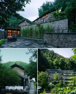 The homestay is transformed from ancient village dwellings, designed by a China Academy of Art architect. The standalone earthen houses follow the mountain's contours, featuring double-eaved roofs and minimalist white walls that blend seamlessly with the bamboo groves and mountain streams. It has won the "Best Hotel Design Award"! A mountain spring flows through the courtyard, and from your window, you can admire sea-like bamboo waves and misty mornings, or stargaze at night—transporting you back to childhood memories of wild mountain days at grandma's house.