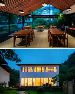 Originally a village dwelling, the homestay was redesigned by a team from the China Academy of Art, preserving the rammed earth walls while blending in modern minimalist design. Every brick and tile reflects reverence for nature and aesthetic ingenuity, earning it the "Best Hotel Design Award." The entrance hides among the trees, with a turquoise pool as an accent. Open the window to see bamboo waves dancing, and discover the surprise of a welcoming pup on the courtyard's stone path.