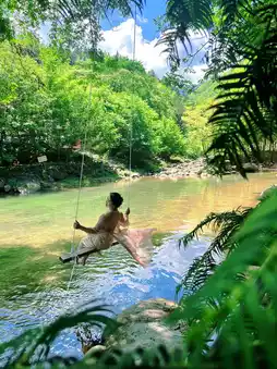🌿 Hidden Easter Egg: There is an "ecological fish pond" at the end of the rafting. You can buy fish food and play with fish after playing. There is also a bamboo forest cafe next to it. The iced American coffee is a perfect match with the rustling sound of bamboo leaves! Remember to bring your own water gun. The water here is so clear that you can see the small fish in the cracks of the rocks. You can also dance with the fish when playing water fights~