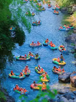 🎢 The rafting experience is overwhelming: the 2.5-kilometer river has a drop of more than 50 meters. The rapids section is exciting to scream, and the gentle area can leisurely play water fights~ The key point is that there are anti-slip handrails on both sides of the river, and it is super safe to stop and take pictures in the middle! Each dangerous beach is guarded by staff throughout the whole process, so novices can also rush with confidence~