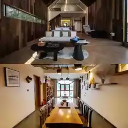 * Standalone treehouses with log and floor-to-ceiling glass architecture