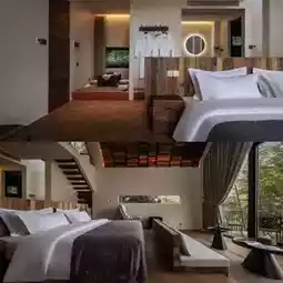 * Each room features a spacious terrace and private hot spring pool with panoramic bamboo sea views