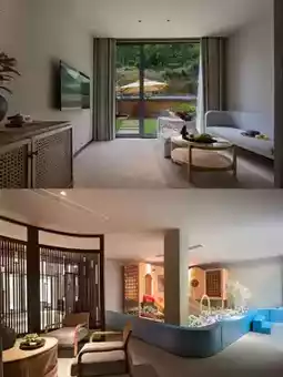 The breathtaking mountain view greets you as soon as you open the door! Featuring a massive infinity pool and floor-to-ceiling windows, every room comes with a private courtyard or terrace. We stayed in the **Qingshan** room, which had its own hot spring bath ♨️—soaking under the stars at night was pure bliss! The butler service was thoughtful, even arranging a birthday surprise for us in advance 🎂.