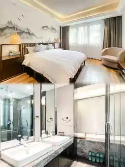 🛏️ Having stayed at many Anji homestays with varying quality, Jiajing’s twin-bed family room left a lasting impression! Designed like a resort hotel, it offers spacious layouts, great natural light, soundproofing, and amenities rivaling star-rated hotels. The bathroom has a separate wet/dry area with a 🛁, strong shower water pressure, and ample disposable toiletries. The north side has a large bed, while the south features a tatami area. The bedding is skin-friendly, towels are highly absorbent, and toiletries are well-stocked.