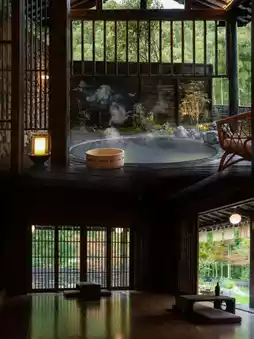 - Accommodations: 11 uniquely named and themed rooms, such as "Long Leisure," "Morning Calm," and "Cicada Rain"🌿. Each room comes with 180° floor-to-ceiling windows🪟, private terraces or courtyards🏡. Select rooms include stargazing bathtubs🛁 or tatami tea spaces🍵. Natural linen bedding, underfloor heating🔥, and custom aromatherapy🌸 ensure a cozy stay.