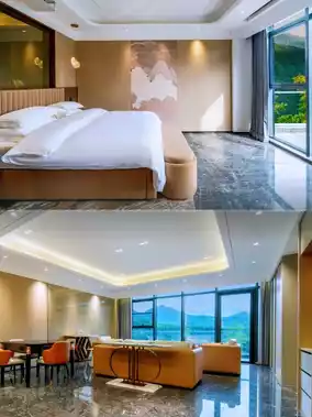 There are 202 panoramic rooms, all with floor-to-ceiling windows and viewing terraces overlooking the lake, mountains, and bamboo sea. Unique room types include "Lan Shan Room," "Qing Miao Room," and "Yi Zhu Room."