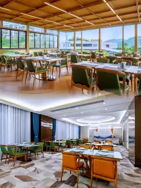 Dining: Offers a variety of dining options including a special buffet breakfast, Wukeshu Japanese cuisine, Korean BBQ, and more. The dry mixed noodles at the Squirrel Tribe buffet breakfast are a must-try.