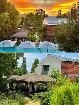 Hidden in Anji Bamboo Sea🍃 open the window and directly bump into the "Little Switzerland" mountain view⛰️! Cat café + swimming pool + healing triple combo, you can relax and have so much fun you won’t want to leave🌿—working people’s energy tank instantly refilled, coming back next week to recharge😭!