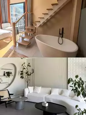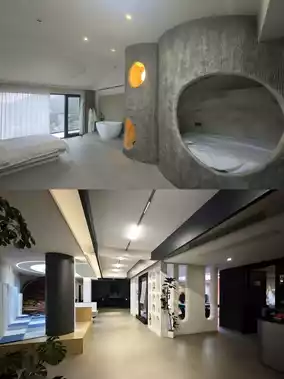 Stayed in a cave family room, with a small tent so the kids don’t cling 👶; the room’s private hot spring is warm and cozy, you can soak while enjoying the mountain view ✨, the bed is soft and the place is clean and hygienic, very comfortable to stay!